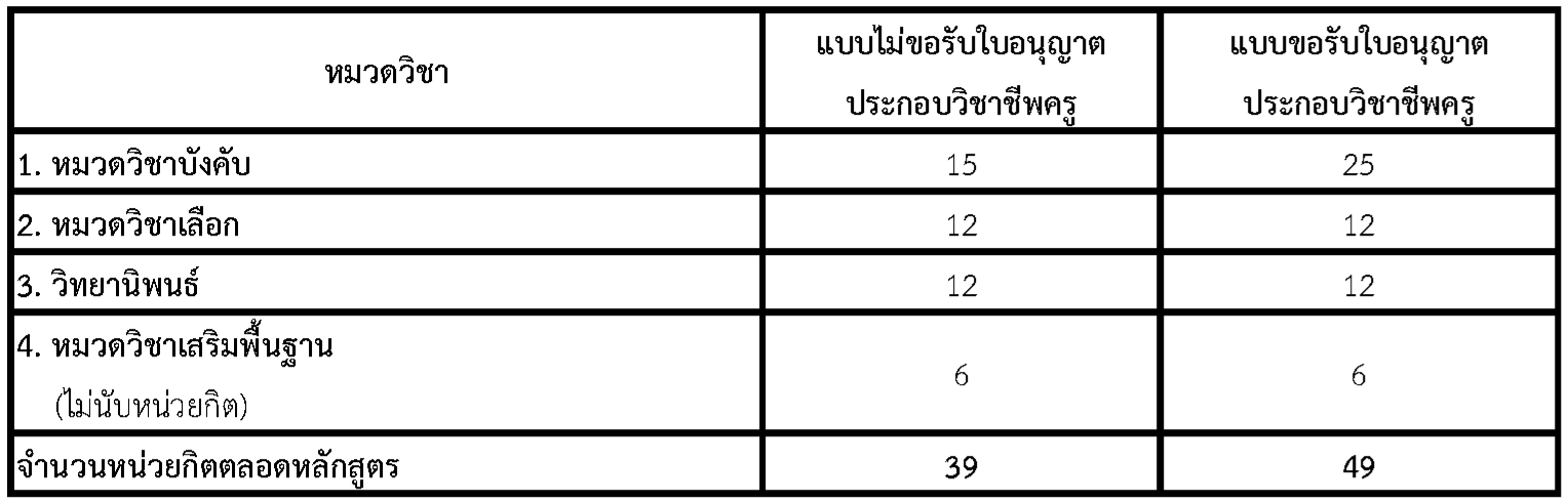 (แบบไม่เข้ารับการทดสอบเพื่อขอรับใบอนุญาตประกอบวิชาชีพครูจากคุรุสภา) >>โครงสร้างรายวิชา<<