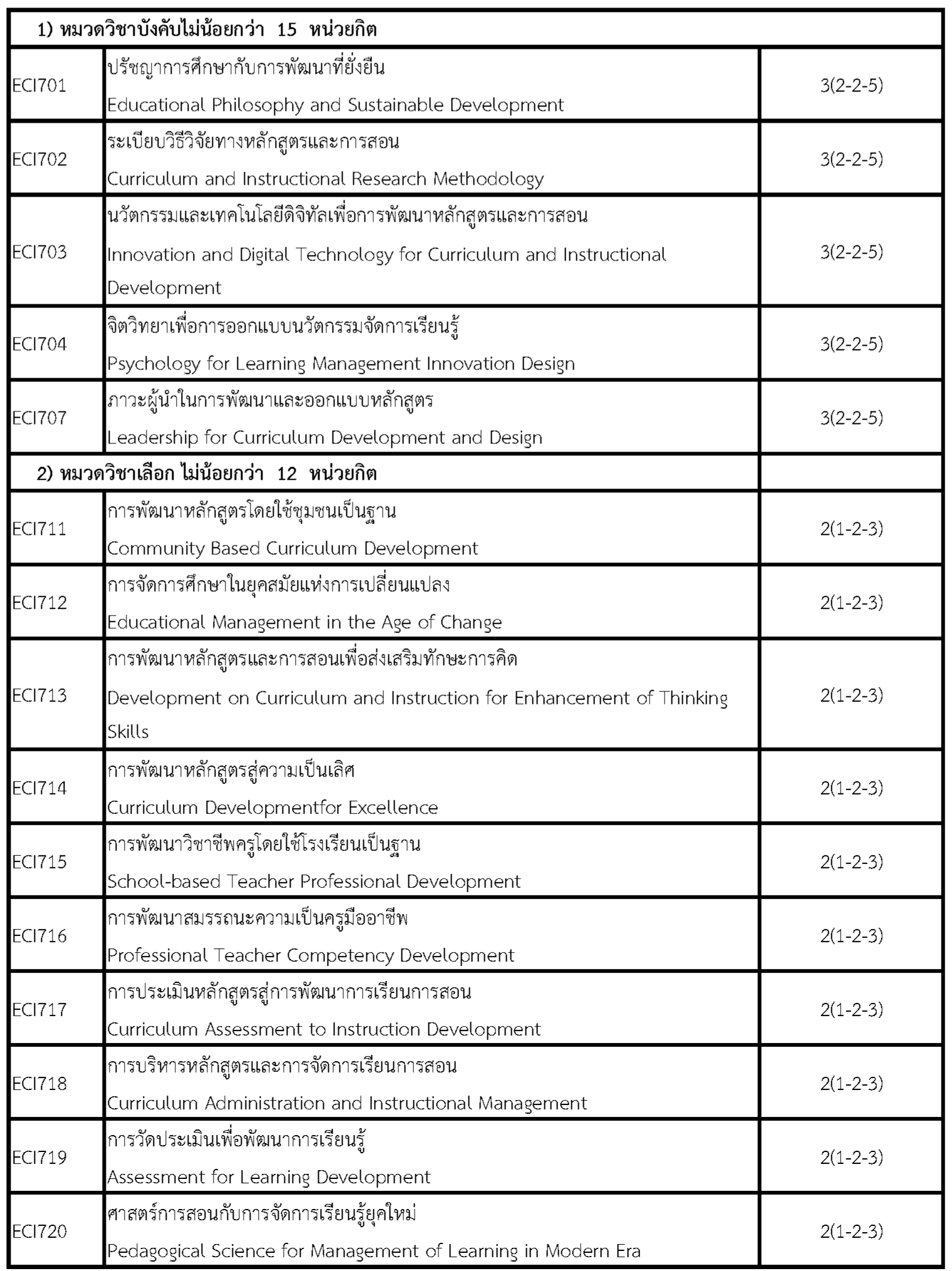 หมายเหตุ: นักศึกษาต้องสอบผ่านเกณฑ์ความรู้ภาษาอังกฤษ ระดับบัณฑิตศึกษา ตามประกาศของมหาวิทยาลัยกำหนด