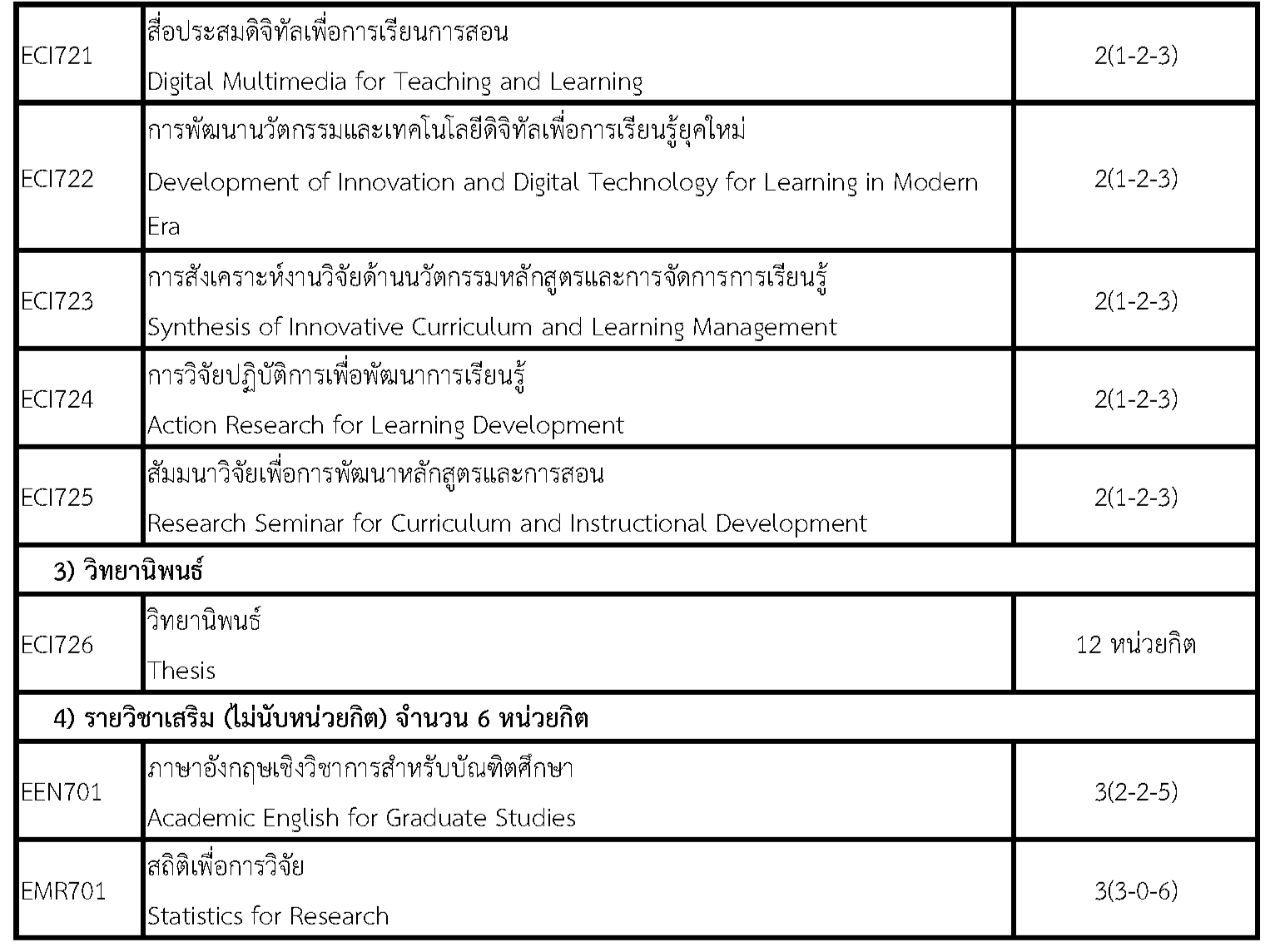 ชื่อเต็ม (อังกฤษ) : Master of Education (Curriculum and Instruction)