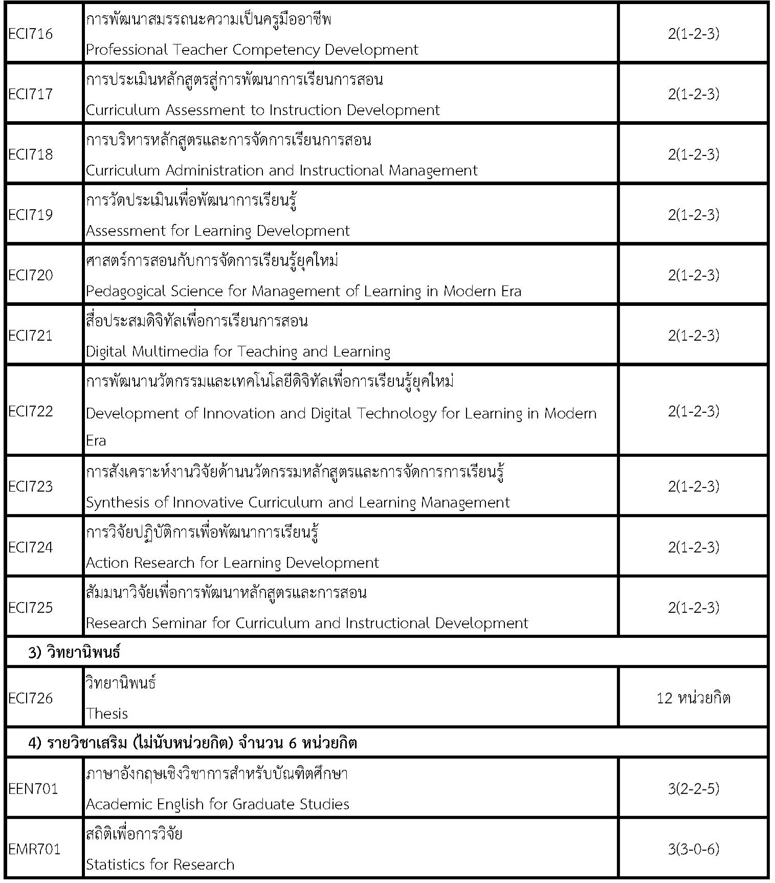 ชื่อเต็ม (อังกฤษ) : Master of Education (Curriculum and Instruction)