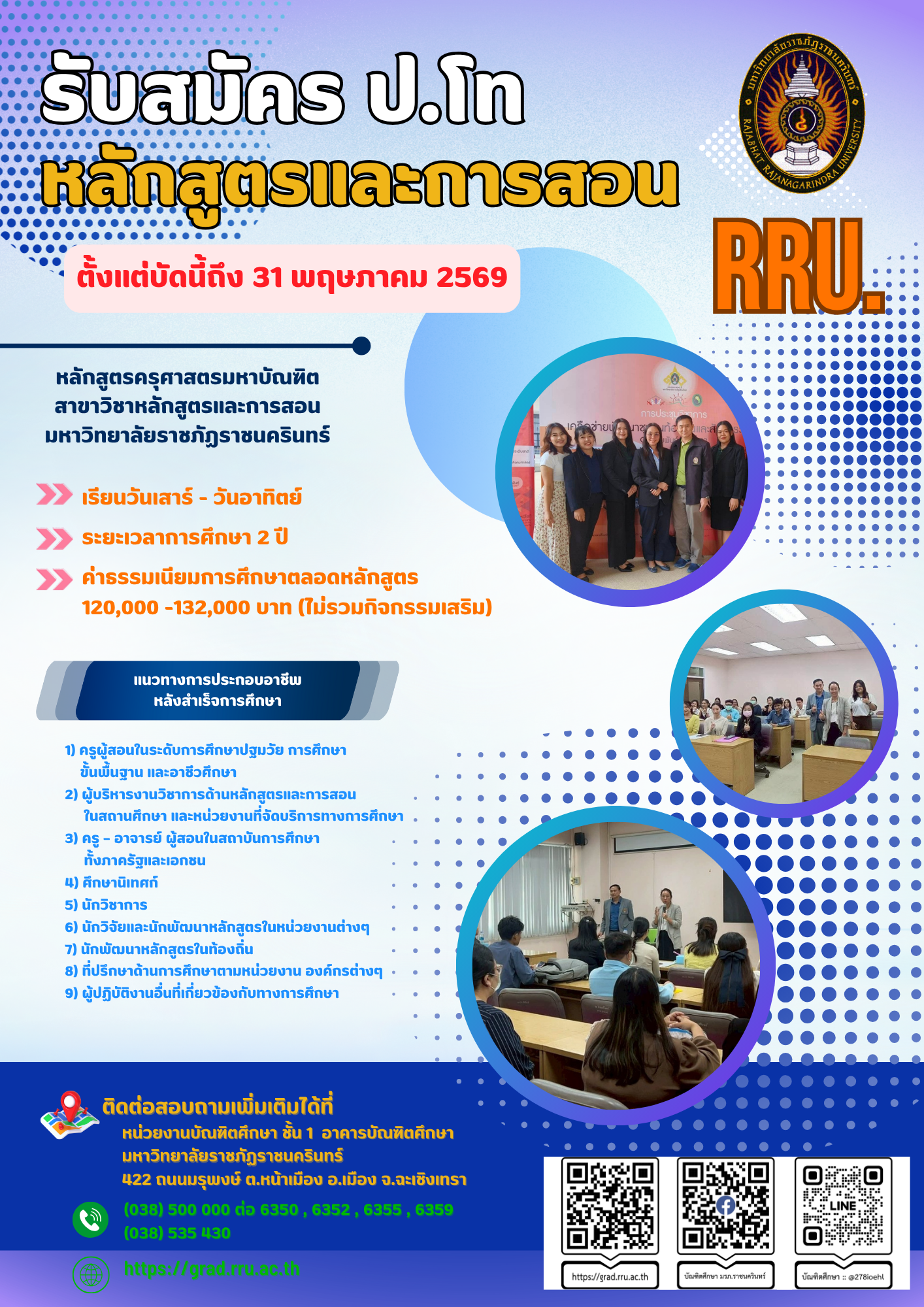 • ครุศาสตรมหาบัณฑิต สาขาวิชาหลักสูตรและการสอน >> รายละเอียดและข้อมูลติดต่อหลักสูตร <<
