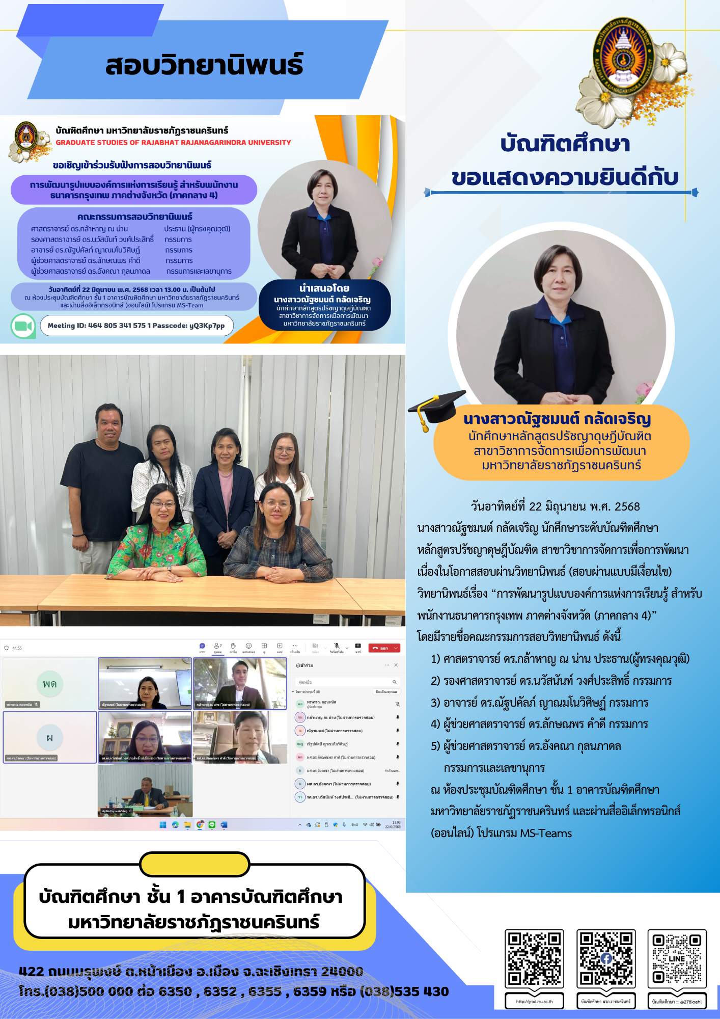 แสดงความยินดีสอบผ่านเค้าโครงวิทยานิพนธ์/วิทยานิพนธ์
